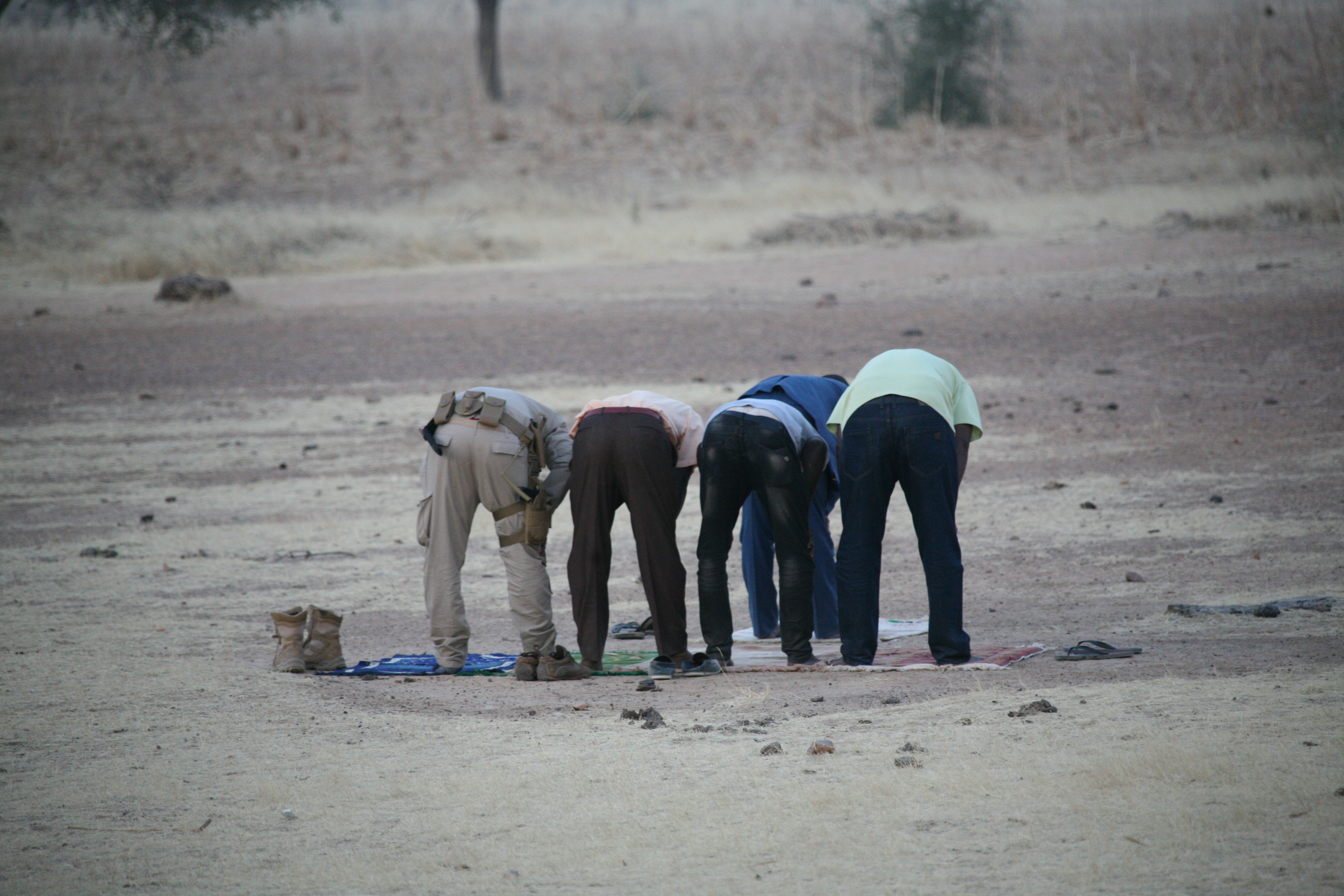 2018년 12월 28일 아침 6시 30분 알파자지(Mohamed Alfazazi)는 감기로 몸이 힘들 텐데도 꾸란을 암송하고 있다. 저렇게 열심히 알라를 찾는데 왜 이곳 사정은 어렵기만 한지.... 저런 열정으로 공부를, 일을 한다면 어떨까? 그는 작년에 사우디 메카를 다녀왔다고 하니 정말 신앙이 깊은 사람이다. 오후에 디파(Diffa)에서 젠다르(Zindar)로 이동하는 중에 길에 차를 세우더니 매트를 한 장들고 허허벌판으로 간다. 메카에 기도를 하는 시간이다. 알파자지가 앞에 서고 다른 사람들이 뒤에 서서 인도를 받는다. 공동체에서 신앙심이 깊거나 행실이 올바른 사람이 기도를 주관한다고 한다. 그래서 국회부의장도, 운전사도 경호원도 모두 알파자지 뒤에 서서 기도를 했었구나.